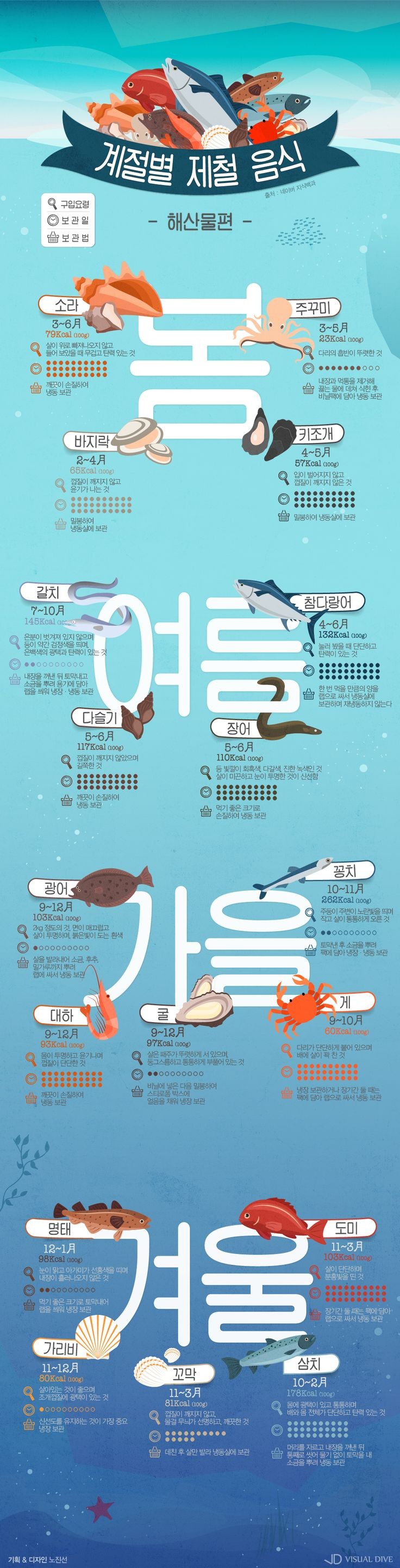 음식은 제철에 먹어야 더 제맛이다. 해산물의 계절별 제철을 알아보자.