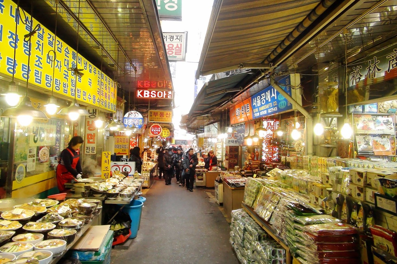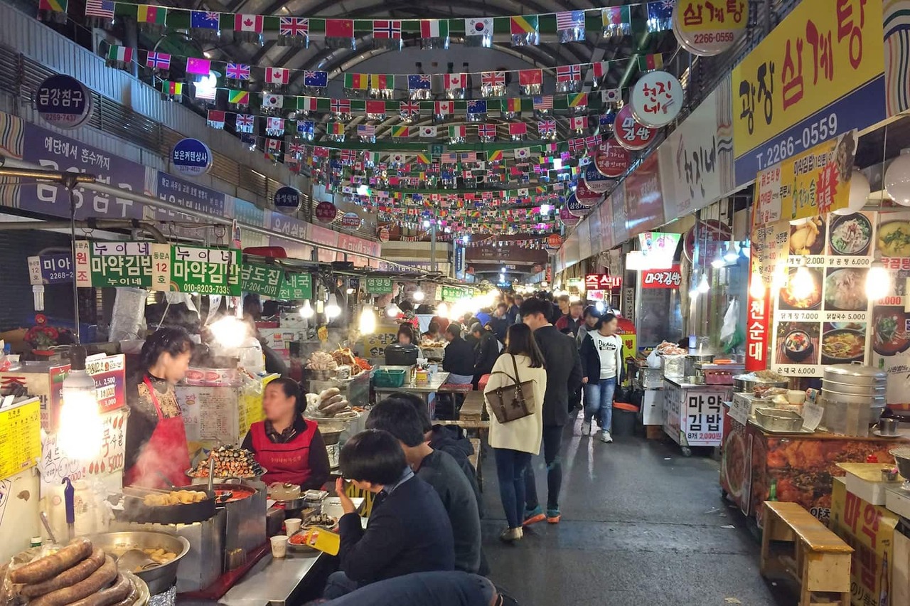 광장시장은 서민들의 저렴한 먹거리 천국이에요. 특히 빈대떡이 유명하지만, 그 외에도 떡볶이, 순대, 어묵 등의 기본 분식 메뉴는 물론, 잡채나 김밥, 비빔밥이나 만두 등 외국인에게 인기가 많은 전통 음식도 판매하고 있어요. 회나 육회, 닭발 등 다양한 메뉴를 한 자리에서 저렴하게 맛볼 수 있어요. 광장 시장에서는 한 끼 식사는 물론 디저트까지 전부 한 자리에서 해결할 수 있답니다.