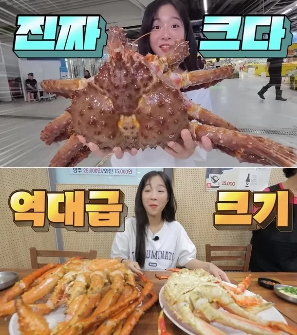 쯔양은 “제가 본 킹크랩 중 제일 큰 것 같다”, “역대급 크기”라며 킹크랩 두 마리를 쪄 먹었다. 이어 가리비와 서비스 전복도 해치운 뒤 마무리로 라면 2개를 끓여 먹었다.