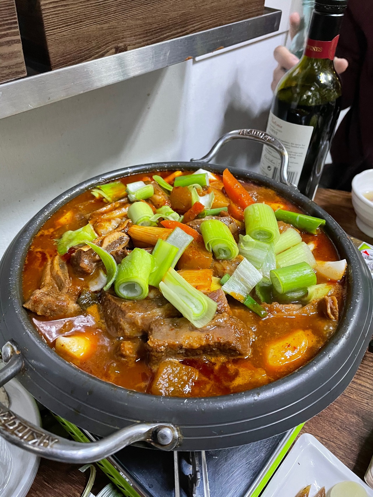 술 한잔 걸칠 땐 국물 안주가 필수 아니겠어요? 인기 메뉴인 고추장찌개엔 두부, 고기, 호박, 감자 등의 재료가 아낌없이 들어갔어요. 칼칼하고 얼큰한 국물 때문에 술이 들어갈 수밖에 없는 맛