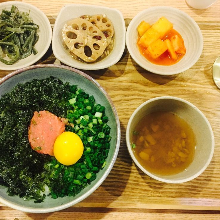 제가 간 날의 메뉴는 두 가지로 나물밥과 명란비빔밥이었는데, 나물밥은 매일 파는 메뉴이고 명란비빔밥은 다른 메뉴인 장조림버터밥과 이틀에 한 번 씩 번갈아 판매되는 것 같아요. 노른자와 명란, 파, 김의 색조합과 정갈한 배치 덕분에 눈이 즐거운 비쥬얼이더라구요 맛은 상상 그대로의 고소하고 깔끔한 맛으로 명란 덕분에 살짝 느껴지는 짭쪼름함이 입맛을 돋궈줍니다 :) 딱히 특별할 것까진 없지만 우리가 명란비빔밥에 거는 기대는 충분히 충족해주는 맛이에요: