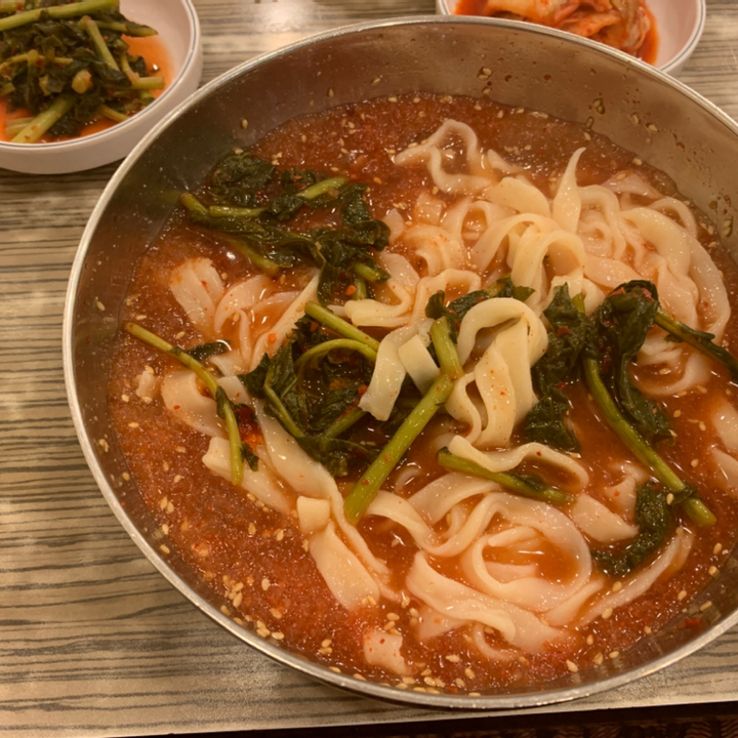 이 칼국수집은 바로 코앞에 있는데 망플에서 리뷰도 보고 주말마다 사람이 줄 서 있지만 뻔한 맛이겠지라고 그동안 외면했다. 하지만 이 집은 뻔하지만 특별하다. 개운하고 감칠맛 나면서 쳥양고추가 들어가서 은근 칼칼한 국물. 전분을 넣어서 얇은 부분은 부들부들하고 두꺼운 부분은 수제비 같은 식감이 매력적이다. 계속 젓가락을 유혹하는 마력이 있다. 국물이 약간 익숙해질 때쯤 여기에는 두가지의 다데기가 있다.