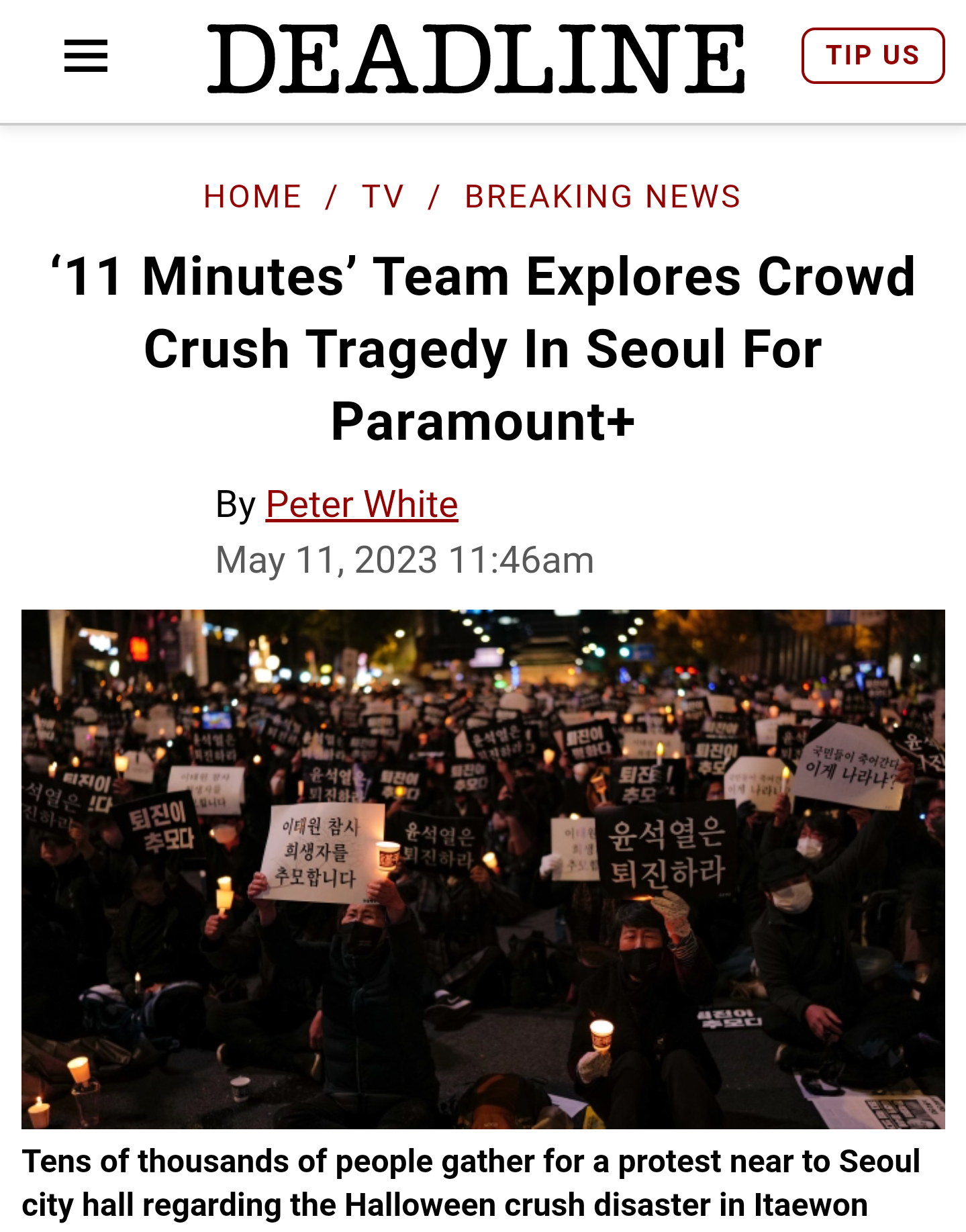 ‘11 Minutes’ Team Explores Crowd Crush Tragedy In Seoul For Paramount+