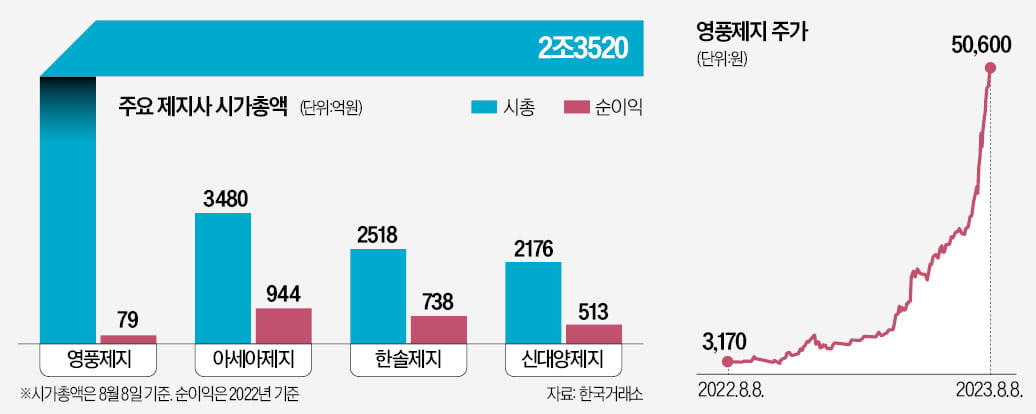 5천억 원은 키움증권 상반기 순익에 육박하고, 영풍제지 현재 시가총액 3분의 1 규모입니다.