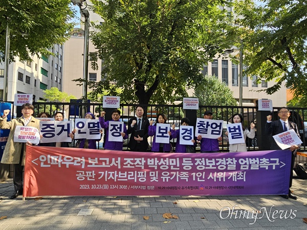 유족들은 재판 전 기자회견을 열고 "책임 회피를 위해 핼러윈 데이 인파 우려 정보 보고서를 삭제하는 중대한 범죄를 저지르는 것도 모자라서 여전히 혐의를 모두 부인하고 있다"며 "경찰의 증거인멸 행위를 규탄한다"고 밝혔다.