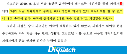 "나 지금 계좌 이체로 투자를 해야 해. 그런데 미국이야. 계좌 이체를 못 해. 네가 대신 송금 좀 해줘. 한국에 돌아가면 2배로 갚을게." (전청조)