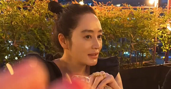 프릴 원피스에 잔머리 없이 높게 올려 묶은 헤어스타일로 생일룩을 연출하며, 우아한 분위기를 한껏 자아냈다. 특히 50대라는 사실이 믿기지 않을 만큼 투명하게 맑은 피부와 동안 외모가 시선을 사로잡는다.