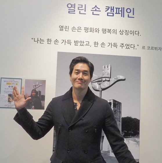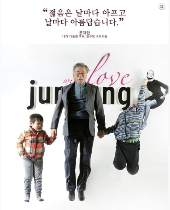 문 대통령은 의원 시절이던 2013년 전시장을 찾아 점프샷을 찍었다.