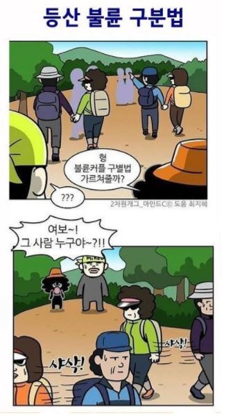산악회원 D씨는 "남자들과 여자들 모두 2~3명씩 몰려다니며 상대방을 탐색한다"며 "선글라스 끼고 이어폰으로 귀를 막은 채 힘차게 일명 '파워 워킹'을 하는 여성의 경우 '오늘은 건들지 말라'는 뜻일 수 있어 조심해야 한다"고 말했다.