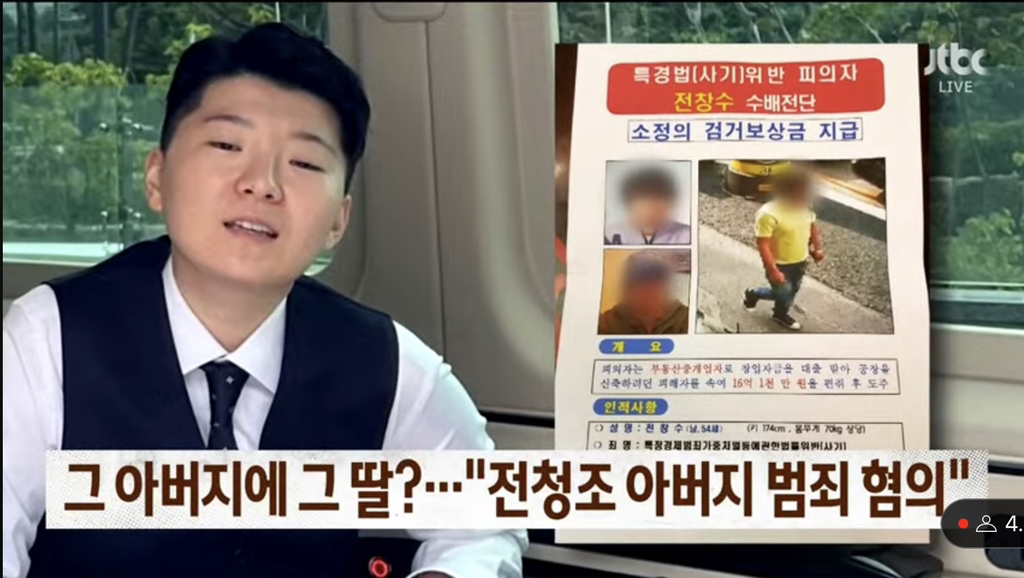 JTBC는 27일 '사건반장'을 통해 전청주의 아버지인 전창수 씨의 사기 혐의 의혹을 보도했다.
