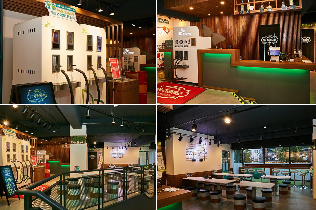 마치 셀프 주유소의 주유기처럼 생긴 맥주 디스펜서를 이용해, 원하는 생맥주를 직접 선택해 마실 수 있다. SK이노베이션 주요 사업장이 위치한 4개 지역의 대표 수제 맥주인 서울의 어메이징브루잉 컴퍼니, 인천의 인천맥주, 대전의 더랜치브루잉, 울산의 트레비어가 준비되어 있다.