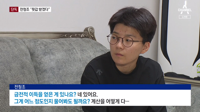 전청조 첫 방송 인터뷰 “죗값 받겠다”
