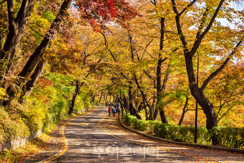 가을이 만연했음을 가장 잘 알려주는 찬란한 지표다. 그중에서도 서울을 대표하는 남산은 도심보다 단풍이 조금 늦다. 남산을 에워싼 둘레길은 길 전체가 단풍 명소다.