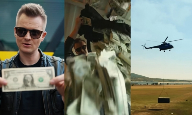 바스도셰크는 자신의 유튜브 채널에 돈을 준비하는 모습과 헬기 밑 컨테이너에 실어 올리는 모습을 공개했다.