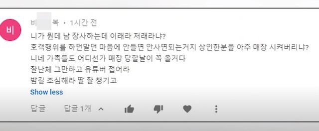 그는 불법적인 행위를하는 수산시장을 저격을 했는데 이에 상인들이 딸 잘 챙기고 밤길 조심하라고 댓글을 남긴 것입니다.