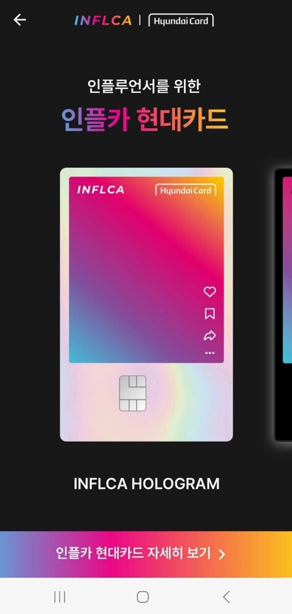여러분, 제 인플카 카드 좀 보세요!!! 너무 예뻐요!!! 사진보다 실물카드가 너무 예뻐서 인증샷 좀 예쁘게 찍어봤어요! 빛에 반짝이는 홀로그램 그라데이션이 너무 영롱하지 않나요?!