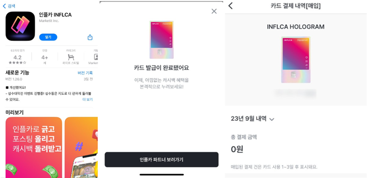 이벤트에 참여하기 위해서는 ‘인플카’app을 다운받아서 회원가입 후, SNS를 연동해야 해요! 좀 복잡해 보였지만, 인플카 가이드를 참고해서 따라하니 쉽게 연동되었습니다. 그 후에 현대카드 인플카를 발급받아야 하구요.
