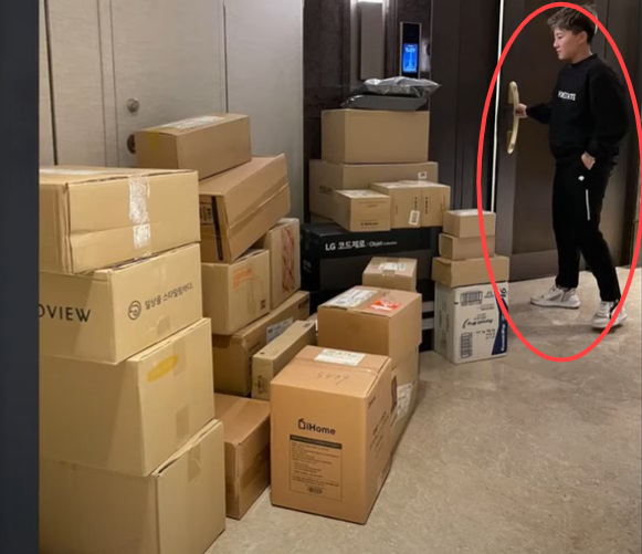 명절에 현관 앞에 산더미 같이 쌓인 선물 사진도 공개됐다.