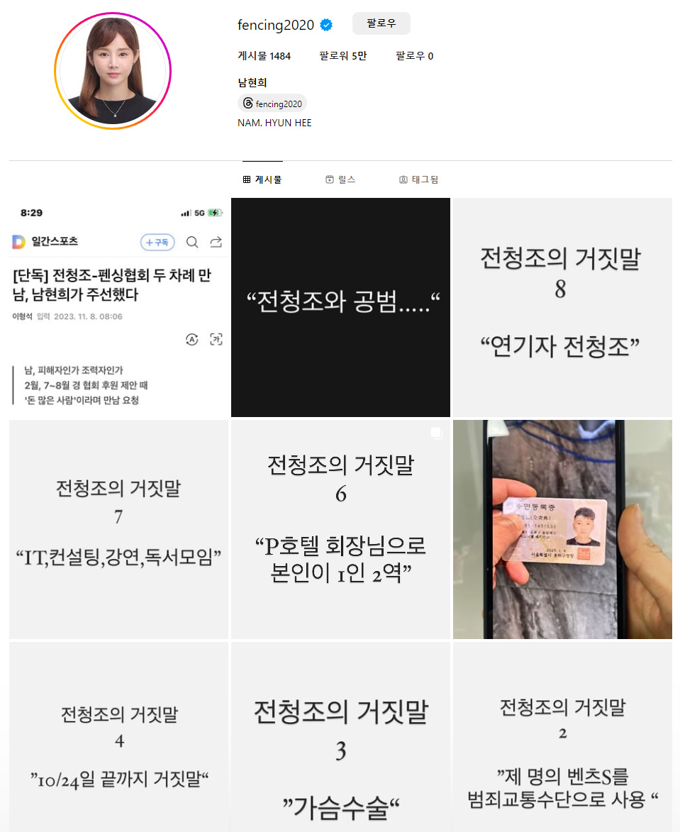 남현희가 8일 새벽 인스타그램에 올린 전청조 관련 의혹 반박 입장문