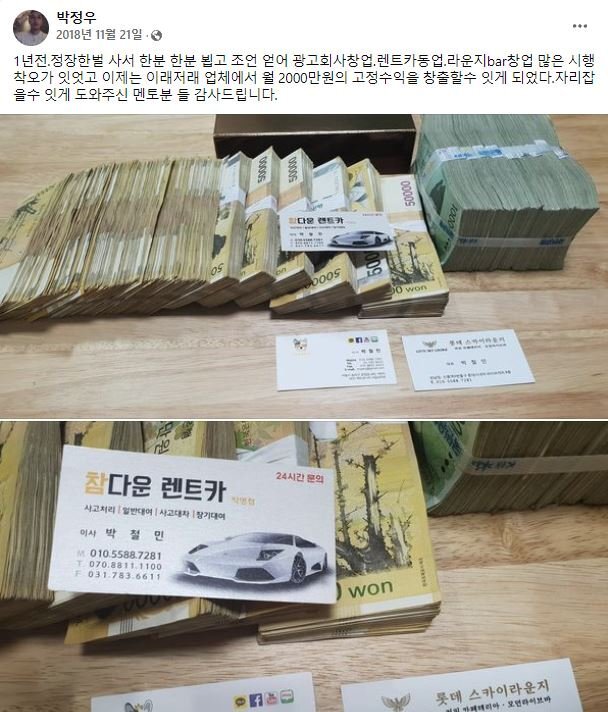 장영하 변호사는 같은 해 10월 김용판 국민의힘 의원에게 박씨의 말을 전달했고, 김 의원은 장 변호사에게서 받았다는 현금다발 사진 등을 경기도 국정감사장에서 공개했으나 해당 사진이 박씨의 렌터카오 사채업 홍보용 사진으로 드러나 논란이 됐다.
