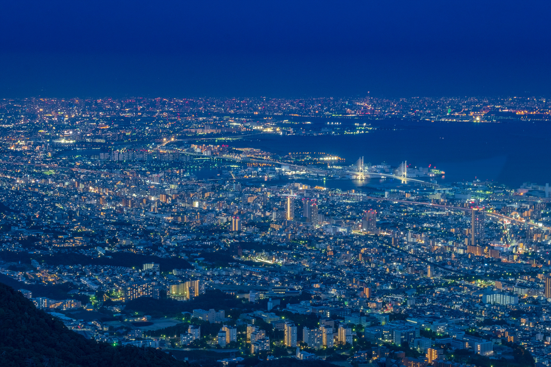 오사카 방면부터 고베 시가지의 별을 흩뿌려 놓은 듯한 반짝거리는 야경.