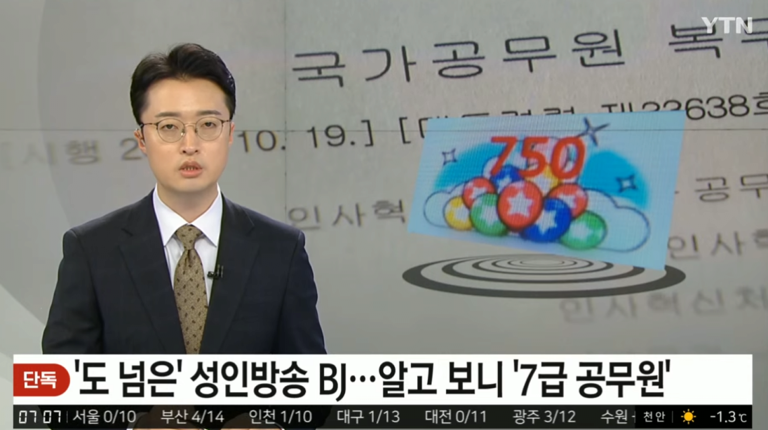 담배를 피우고 신체를 노출하는 등 수위 높은 인터넷 성인방송 BJ로 활동했던 정부 중앙부처 소속 7급 공무원이 다른 공무원의 신고로 적발됐다.