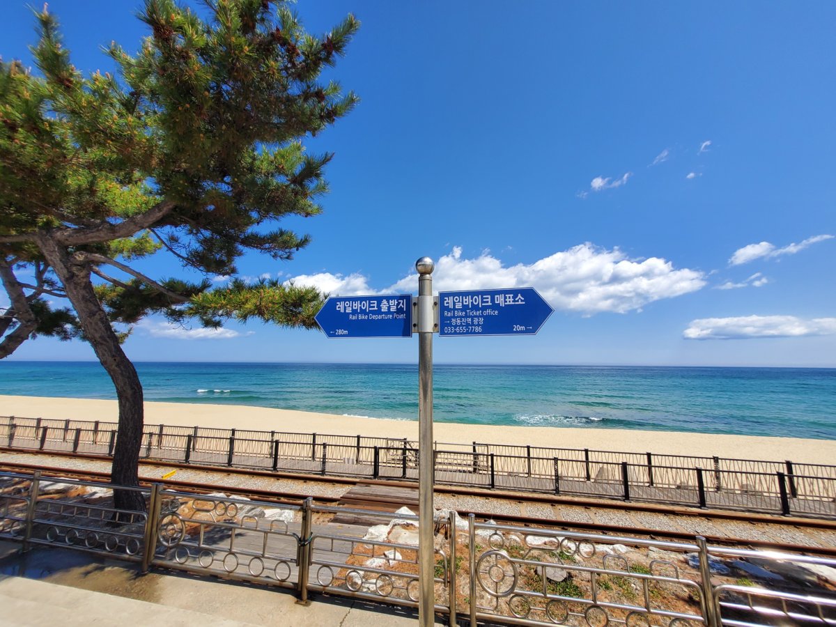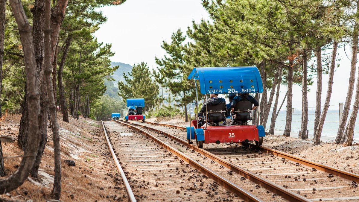 정동진의 필수 코스인 레일바이크. 역에 내리면 바로 보이는 곳으로 접근성이 좋습니다. 해안가를 따라 설치된 레일을 타고 편하게 동해의 겨울 바다를 즐길 수 있답니다. 주말에는 현장 예매가 비교적 치열하니 미리 공식 홈페이지에서 예약하는 것을 추천합니다.