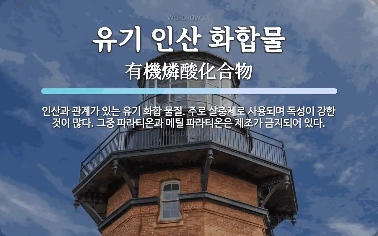 유기인산염은 세계에서 가장 자주 사용되는 화합물 중 하나로 신경가스·제초제·살충제의 주요 성분이며 플라스틱 및 솔벤트 제조에도 사용된다.
