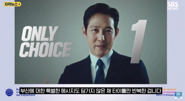 끝으로 가수 싸이와 배우 이정재 등이 ‘온리 원 초이스!(Only one choice)’를 말하며 부산 불꽃놀이 영상과 함께 PT가 마무리됐다.