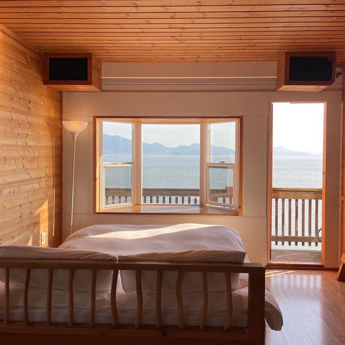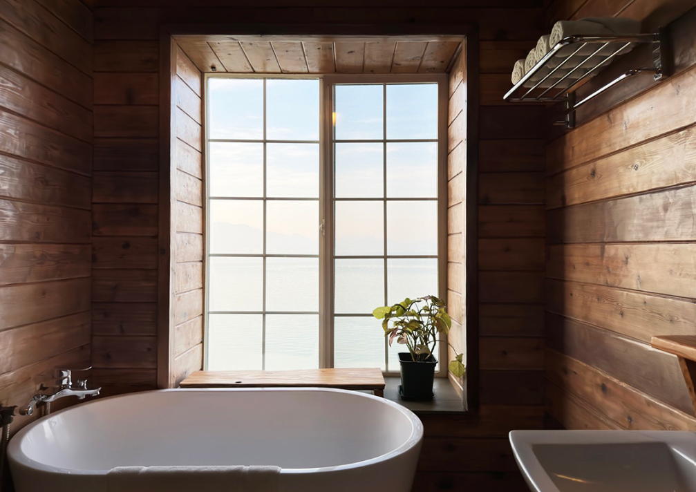 부안 앞바다 변산반도에 위치한 변산바람꽃은 방문객들의 입소문으로 유명해진 곳이에요. 후기를 보면 다시 방문했다는 재방문 인증 글을 꽤 볼 수 있는데요. 그만큼 만족도가 높은 곳이죠. 핀란드의 캐빈을 연상케하는 변산바람꽃은 모두 바다가 보이는 오션뷰 객실을 갖추고 있어요. 삐걱삐걱 소리가 나는 나무 계단을 따라 오르면 머나먼 곳으로 여행을 온 같은 생경한 기분을 들게 해요. 이른 저녁이 되면 욕조에 따뜻한 물을 받고 반신욕을 시작하는 게 좋아요. 창을 통해 하늘을 붉게 물든 노을을 정말 환상적으로 즐길 수 있거든요. 아무것도 안 하고 있지만 더 격렬하게 아무것도 안 하고 싶을 때, 변산바람꽃에서 유유자적한 시간을 보내 보세요.