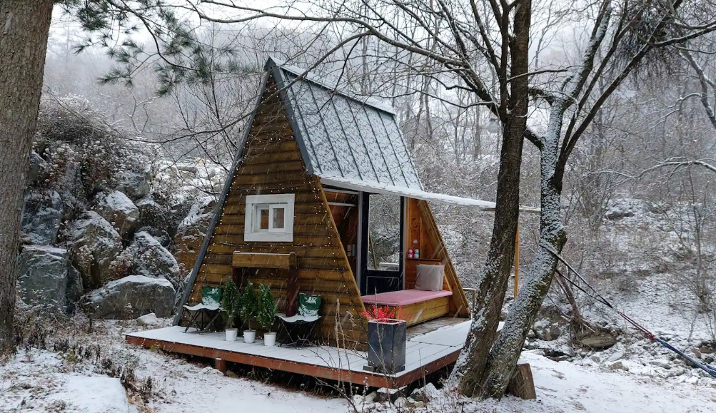 숲 속의 작은 오두막집에서 오붓하게 겨울을 즐기고 싶을 때, 양평의 4계절을 후보에 올려 보세요. 북유럽 감성의 통나무 집으로 아늑한 분위기를 자아내는 4계절은 에어비앤비에서 높은 평점을 자랑하는 곳이랍니다. 슈퍼호스트가 운영하는 만큼 양질의 서비스도 기대할 수 있고요! 방 안에는 불멍을 즐길 수 있는 벽난로가 있고 용문산이 내다 보이는 데크로 나가면 숲멍 때릴 수 있는 해먹도 마련돼 있어요. 평화로운 분위기를 만끽하다 출출해지는 저녁이 되면 야외 바비큐 파티를 시작할 수 있죠. 호스트가 일회용 석쇠를 포함한 바비큐 서비스를 제공하고 있어 게스트는 숯만 챙겨가면 된답니다. 단, 최소 2박부터 예약이 가능하고 평균적으로 한 두 달 스케줄이 꽉 차 있는 만큼 즉흥 여행은 어려운 점 참고하세요.