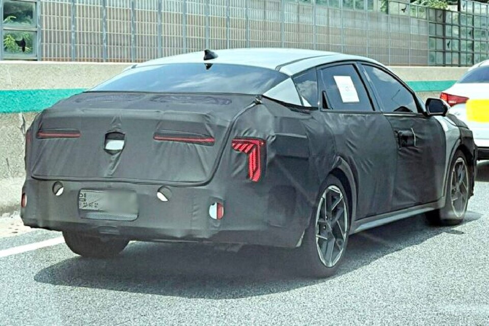 또한, 차체 뒷면은 날렵한 곡선을 강조한 패스트백 형태의 디자인을 채택할 것으로 전망했다. 아반떼와 비교한 사진을 보면 명확하게 알 수 있듯이, 천장에서 트렁크로 내려오는 C필러 라인이 스타일리시하게 떨어지며 아반떼와 차별화된다. 이와 더불어 후방 창문은 스팅어를 연상케하는 날렵한 각도를 적용하면서 마치 스포츠카를 보는듯한 느낌을 준다.