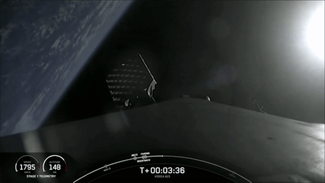 국방부와 스페이스Ⅹ에 따르면 팰컨9이 발사되고 2분 22초 후에 1단 추진체가 분리돼 떨어져 나갔고, 이어 약 20초 후에 페어링(위성보호덮개)이 분리됐다. 발사 14분 뒤인 3시 33분에는 2단 추진체에서 분리된 정찰위성 1호기가 목표로 설정했던 우주궤도에 정상 진입했다.