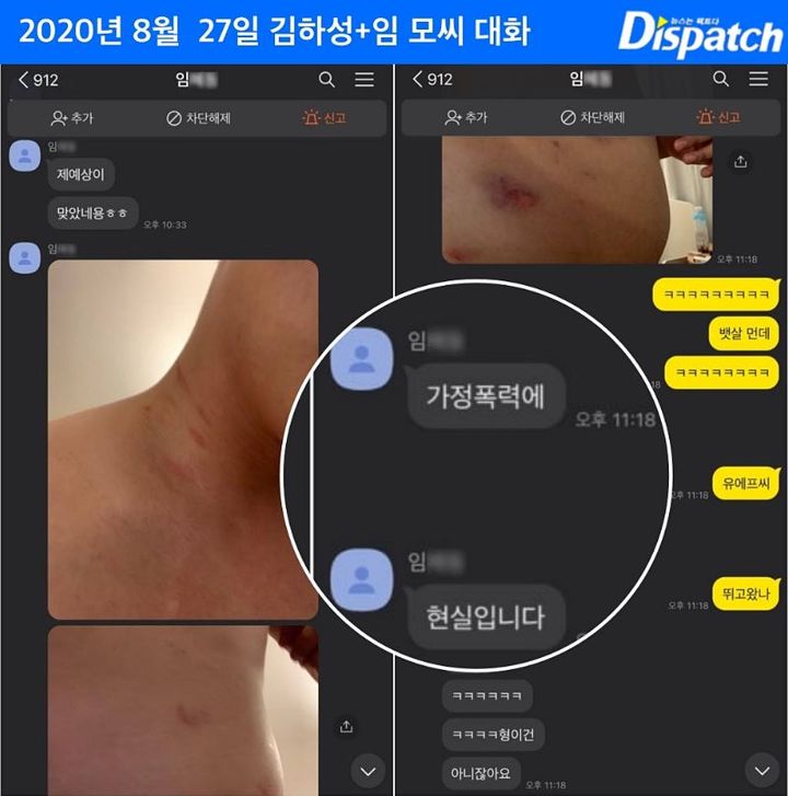 양측 입장이 엇갈리면서 진실공방은 계속될 것으로 보인다. 이런 가운데 디스패치는 지난 7일, 임씨가 언론에 공개한 사진 중 일부가 지난 2020년 8월, 김하성에게 보낸 '가정 폭력' 사진이라고 보도하며 둘의 대화 내용을 공개했다.