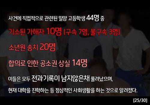 밀양 지역의 남고생 44명이 울산 지역의 여중생이었던 피해자 1명(당시 중3, 1989년생)을
