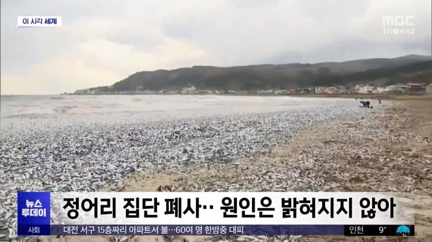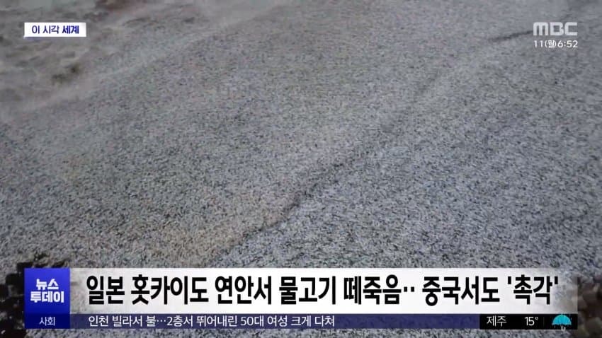 최근 일본 홋카이도 연안에 집단 폐사한 물고기 떼가 떠밀려와 화제인데