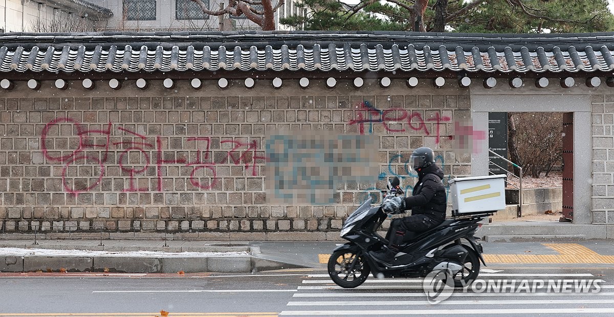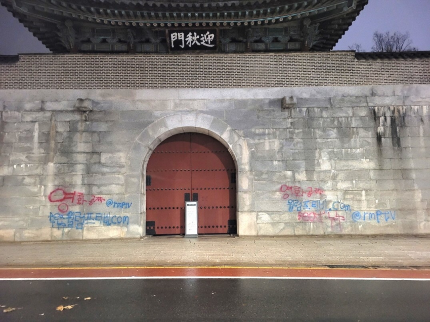 경복궁 담벼락이 스프레이 낙서로 훼손된 사건이 발생해 경찰이 용의자를 추적 중이다.