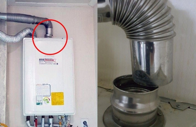 1. 이후 내열 실리콘으로 틈을 감싸고 철사로 고정하는 등 마감을 제대로 하지 않았다. 이 상태로 보일러가 가동됐고 진동이 발생하며 배관이 조금씩 밀려나다 완전히 어긋나게 됐다.