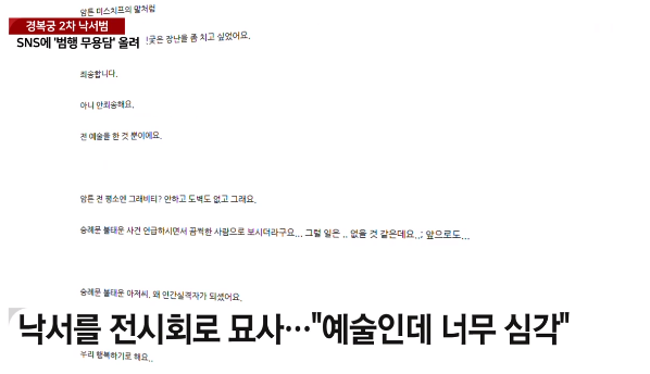 경복궁 낙서하고 잡힌 20대... 경복궁 담벼락에 낙서한 데 이어 미술관 예술품 절도까지 했다.