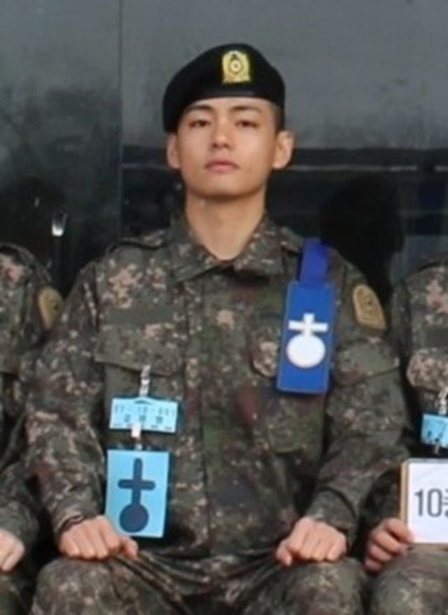 육군훈련소 공식 홈페이지에는 현재 훈련소에서 생활하고 있는 훈련병들의 중대별 스케치 사진이 공개됐다. 공개된 훈련병들 사진 속에는 뷔, RM이 각각 육군 군복을 입고 베레모를 쓴 채 늠름한 표정으로 카메라를 바라보고있다.