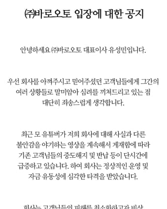 피해자들은 집단 소송을 준비 중이다. 유 대표는 지난달 18일 입장문을 발표하고 “회사를 다시 정상적으로 유지할 수는 없을 것 같다”며 “다만 회사 상황이 나아지는 대로 변제를 진행하겠다”고 해명했다. 유 대표의 입장을 듣기 위해 여러 차례 통화를 시도했지만 연락이 닿지 않았다.