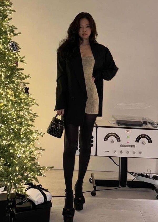 공개된 사진 속 제니는 뒤가 트여있는 짧은 원피스를 입고 긴 머리를 늘어뜨린 모습이다.