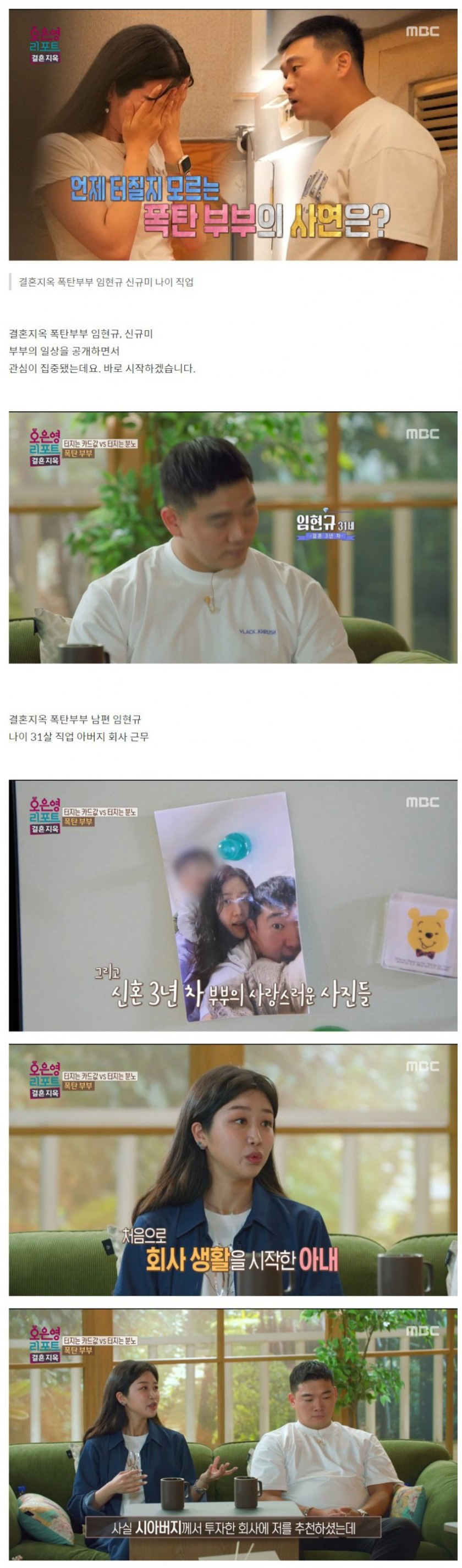 이번 부부는 과거 '애로부부'에 출연했던 것과는 다른 문제로 갈등을 폭로하며 겹치기 출연 논란이 일었다. 방송은 급하고 섭외가 딸렸던 것인가.. 출연 경험자에게 무슨 문제 없으면 이번엔 이걸로 가시죠~ 다른 갈등을 설정해서 만들어 출연했을 것이라는 생각을 지울 수가 없구만...