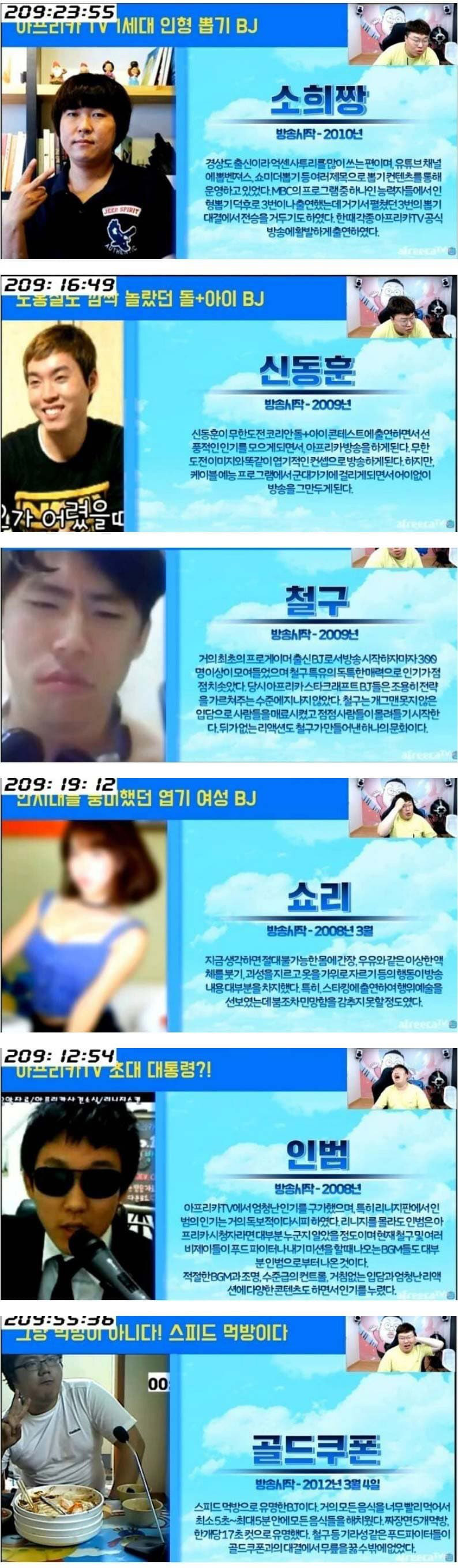 아프리카 TV 초창기 인기 BJ들의 모습