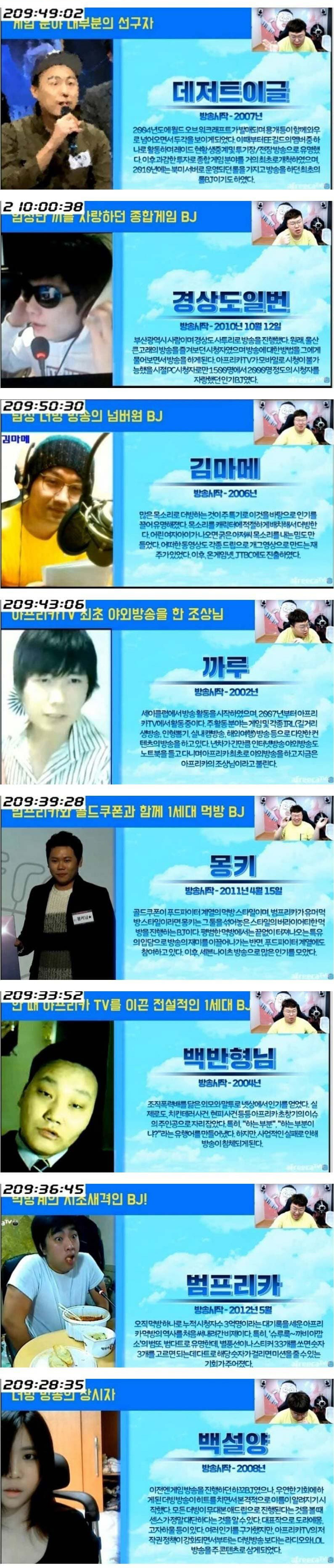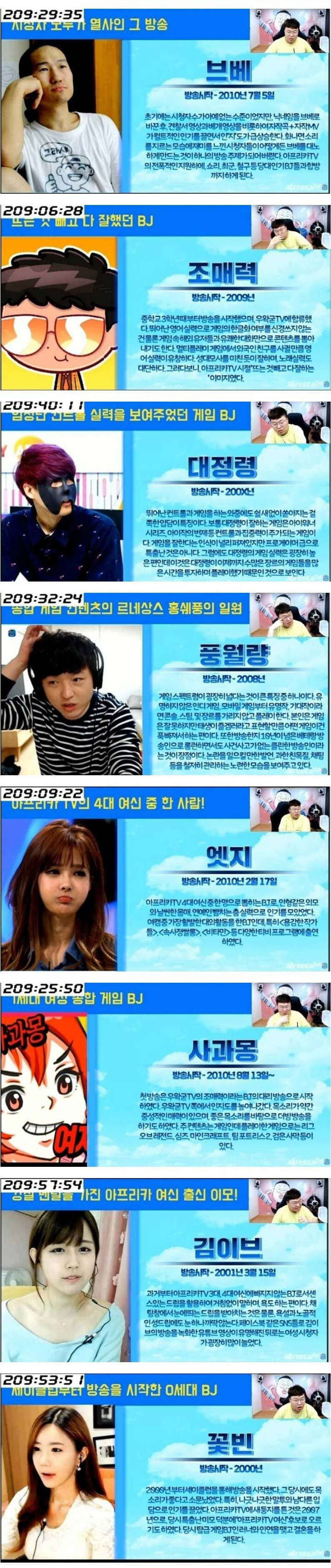 아프리카 TV 초창기 인기 BJ들의 모습