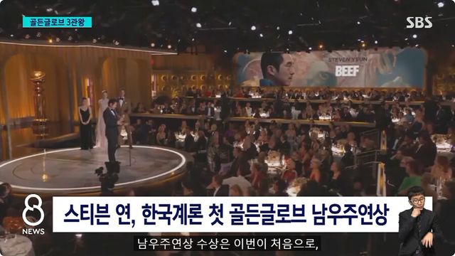 한국계 미국 배우 스티븐 연(40)이 넷플릭스 드라마 ‘성난 사람들’(Beef)로 제81회 골든글로브 티브이(TV) 시리즈 및 영화 부문에서 남우주연상을 수상했다. 한국계 배우가 미국 주요 영화·티브이 시상식에서 남우주연상을 탄 건 이번이 처음이다. 한국계 각본가인 이성진이 각본·감독·제작을 맡고 한국계 배우들이 대거 출연하며 한국 이민자들의 삶을 다룬 ‘성난 사람들’은 작품상과 여우주연상(앨리 웡)까지 3개 부문을 석권하며 이날 시상식의 주인공으로 빛났다.