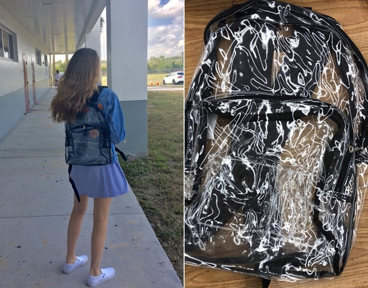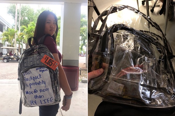 지난 2월 14일, MSD 고등학교에서는 17명이 사망하고 14명이 부상을 당한 총기 난사 사건이 있었다. 끔찍한 시간이 지나고 학교 측은 학생 보호라는 명목 아래 새로운 학생증 배지와 함께 전교생에게 투명한 백팩을 나눠주고 이 백팩을 의무적으로 착용하도록 했다.