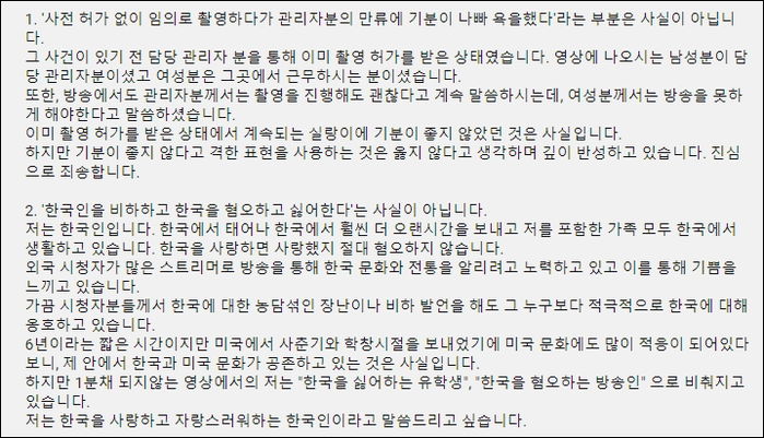 다 미국시청자라 신경도 안쓸것 같더니 사과는 했다. 평소 입버릇이 자기 인성이자 그릇이다.