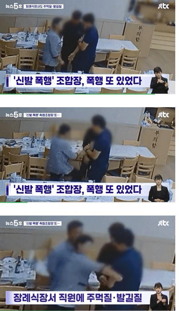 A조합장의 이같은 만행은 식당 내 CCTV 영상을 통해서도 고스란히 드러났다. A조합장은 식당에 서서 남성 직원 2명에게 무언가를 말하더니 갑자기 신고 있던 신발을 벗어 손에 들고 직원들을 향해 휘둘렀다. 팔로 직원들을 밀치기도 했다. 이를 말리던 다른 남성 직원에게도 신발을 휘둘러 폭행했다.