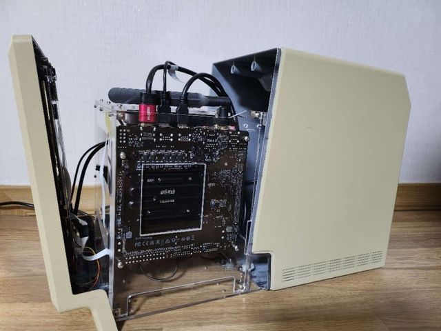 오리지날 매킨토시는 설계되었을때부터 무팬구조라 그 어디에도 팬을 넣어줄 공간이 없어서 최상단에 하나를 박아주기로 했어. 혹시 모르니 부족하면 밑에 하나 더 달아줄 공간은 만들어주고
